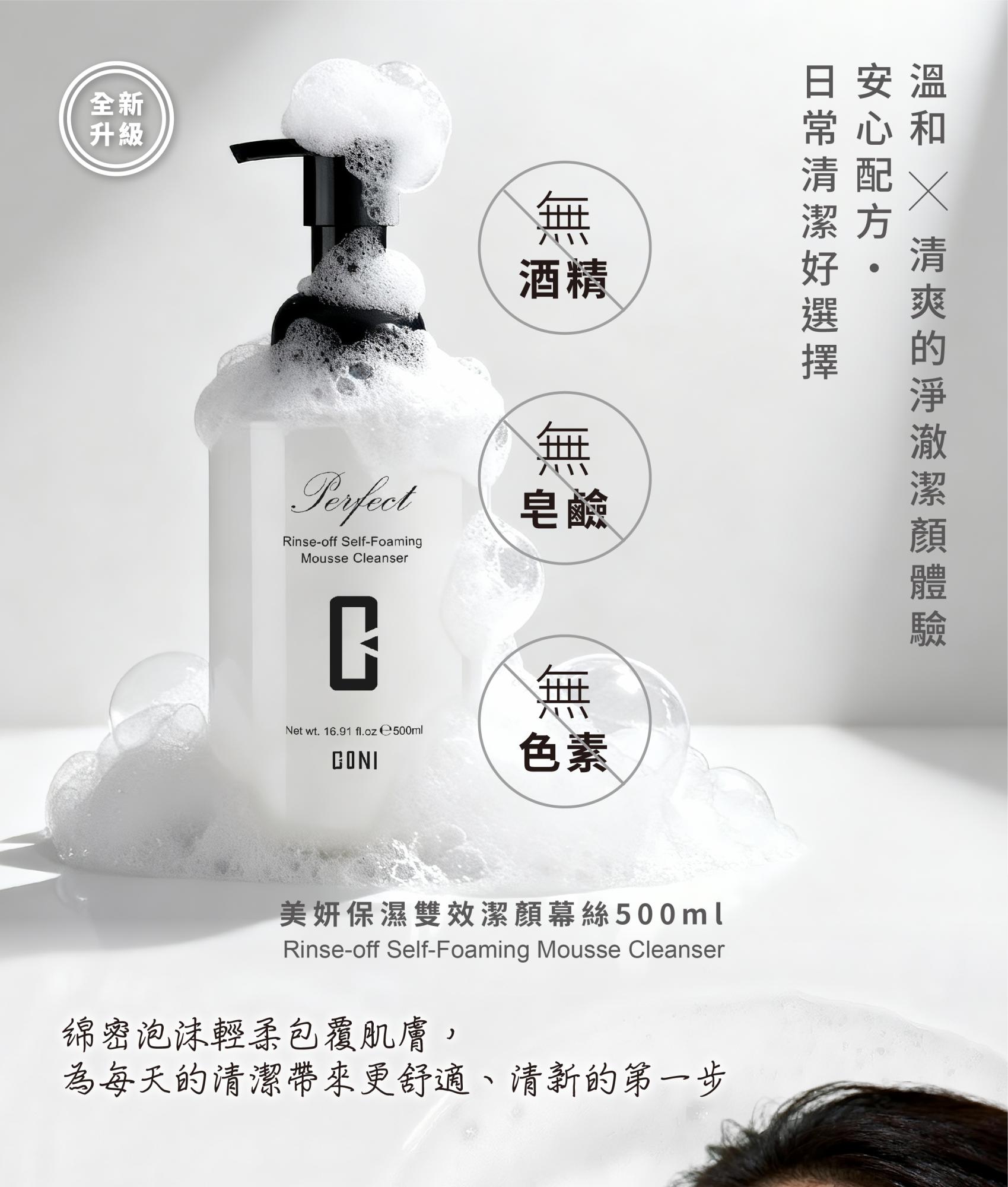 美妍保濕雙效潔顏幕絲 500ml 詳細說明