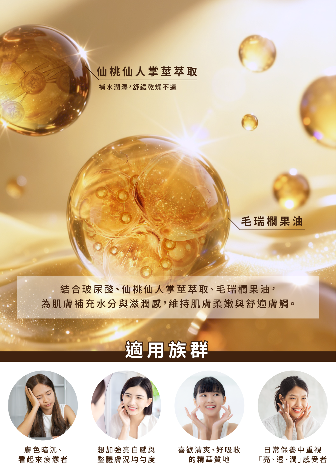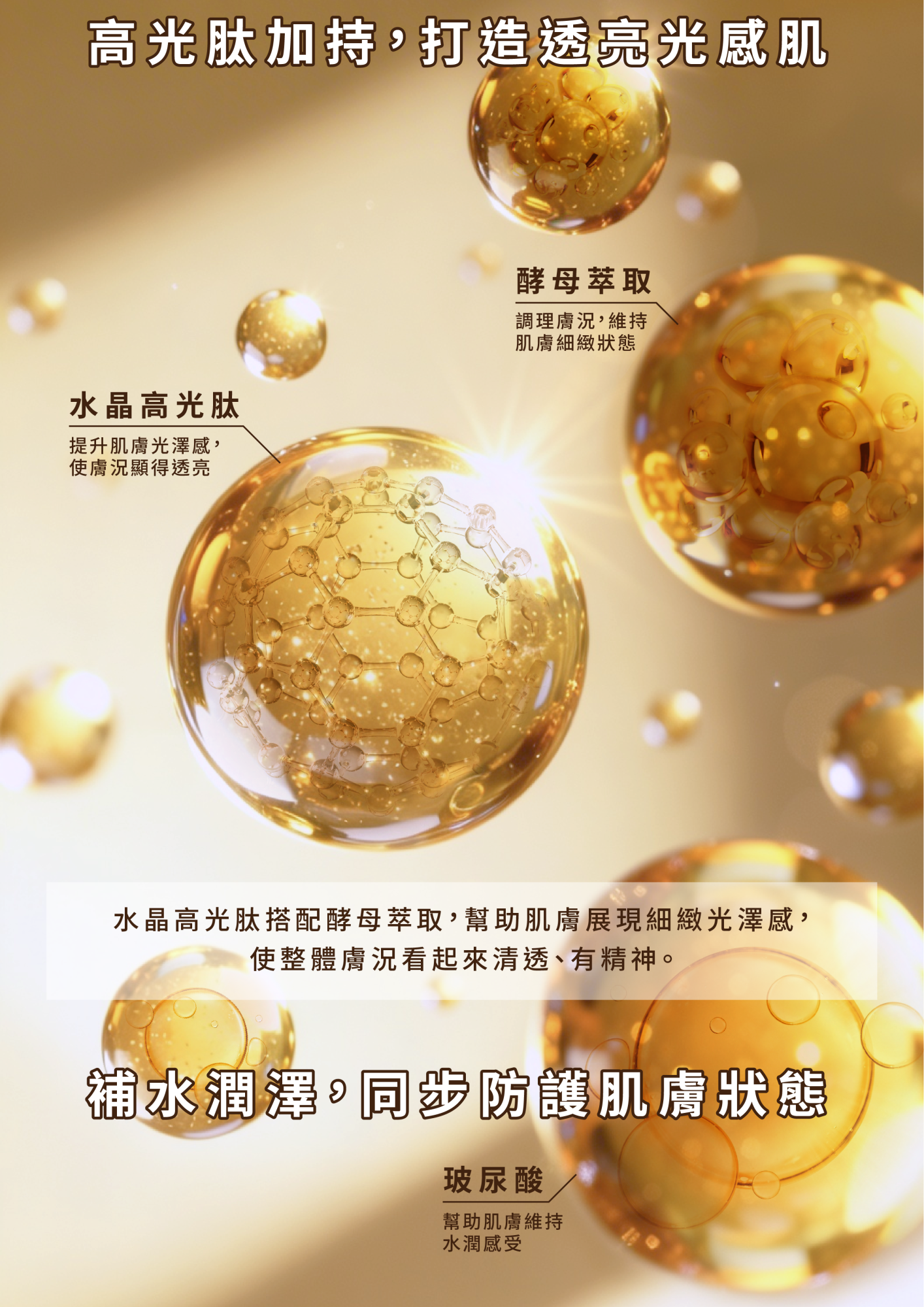 用途:運用創新嫩白機制,含多重關卡防禦肌膚暗沉,其中添加水晶高光肽打造淨白透亮的玻璃肌。
