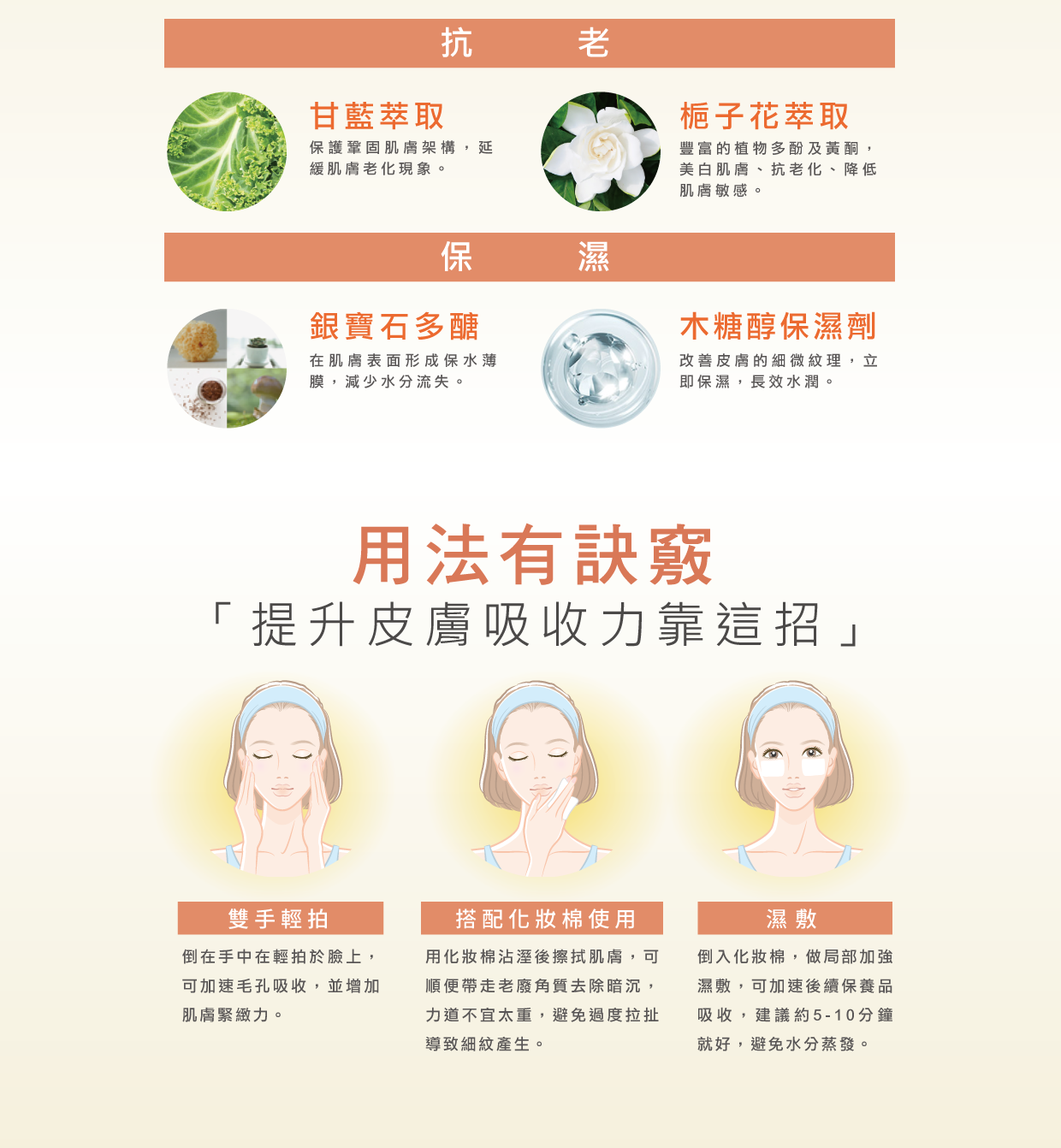用法:取適量,輕拍於全臉再按摩至吸收即可。